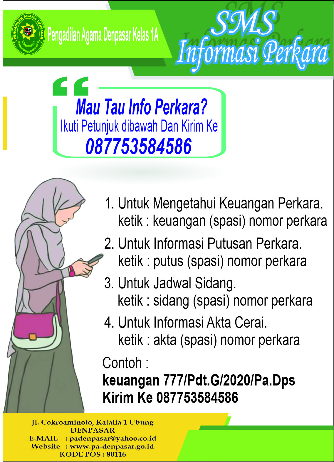 Print Informasi Pelayanan SMS Written by Administrator. Posted in Layanan Hukum Written by Administrator. Hits: 3065Posted in Layanan Hukum < Prev Next >