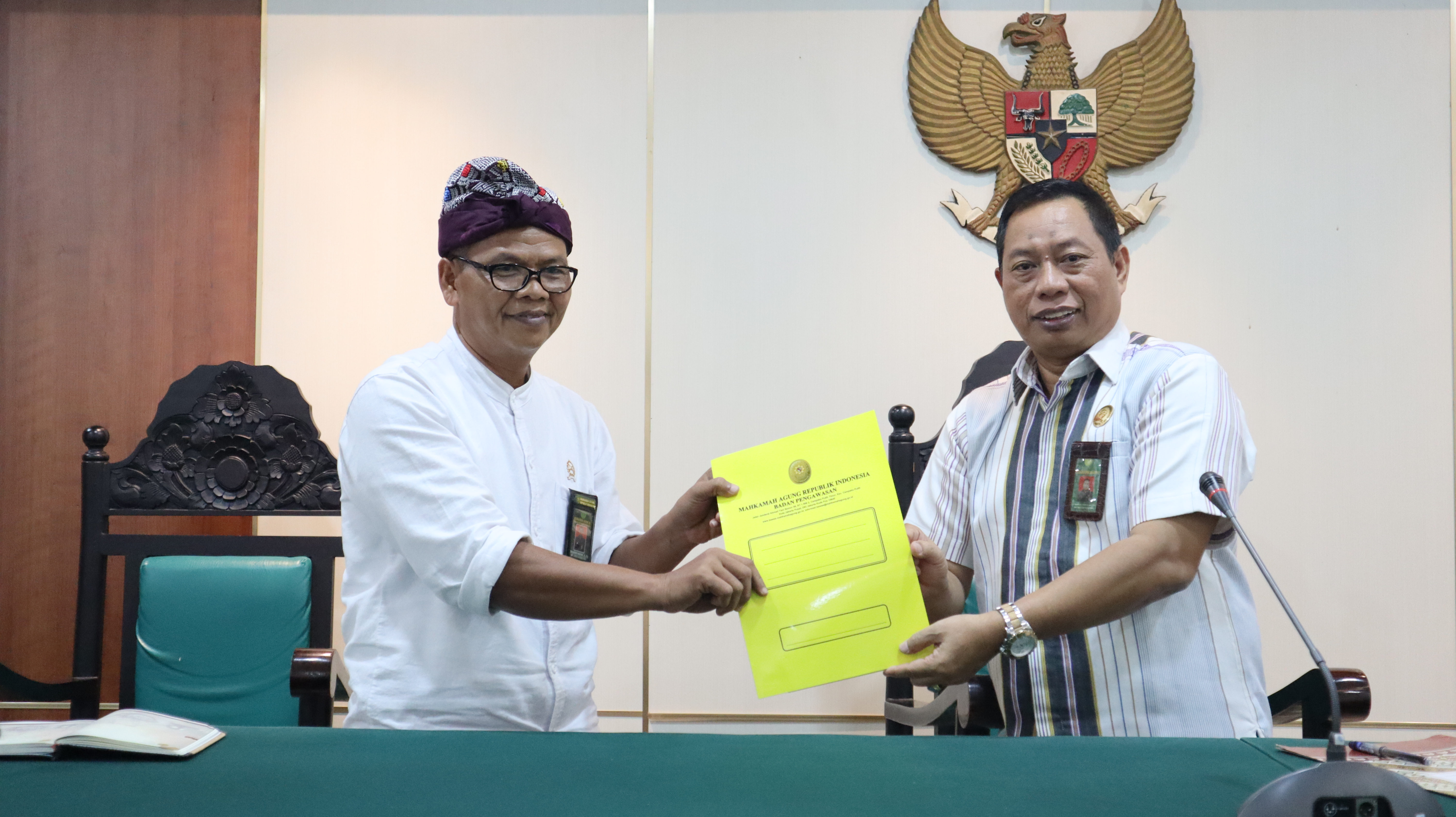 Tim Badan Pengawasan MA RI setelah melakukan Audit Kinerja pada Pengadilan Agama Denpasar, kemudian dilakukan Ekspose Hasil Audit Kinerja pada Pengadilan Agama Denpasar di ruang sidang Pengadilan Agama Denpasar, dan dilakukan penandatanganan Notisi Audit Kinerja pada Pengadilan Agama Denpasar oleh Ketua Tim Pemeriksa Badan Pengawasan MA RI Bapak Dr. H. Achmad Zainullah, SH., MH dan Ketua Pengadilan Agama Denpasar Bapak Muhamad Shalahudin Hamdayani, S.H., M.A. untuk segera ditindaklanjuti oleh auditi dalam tenggang waktu 60 hari sejak notisi disampaikan melalui aplikasi https://bawasmari.mahkamahagung.go.id/wastitama.
