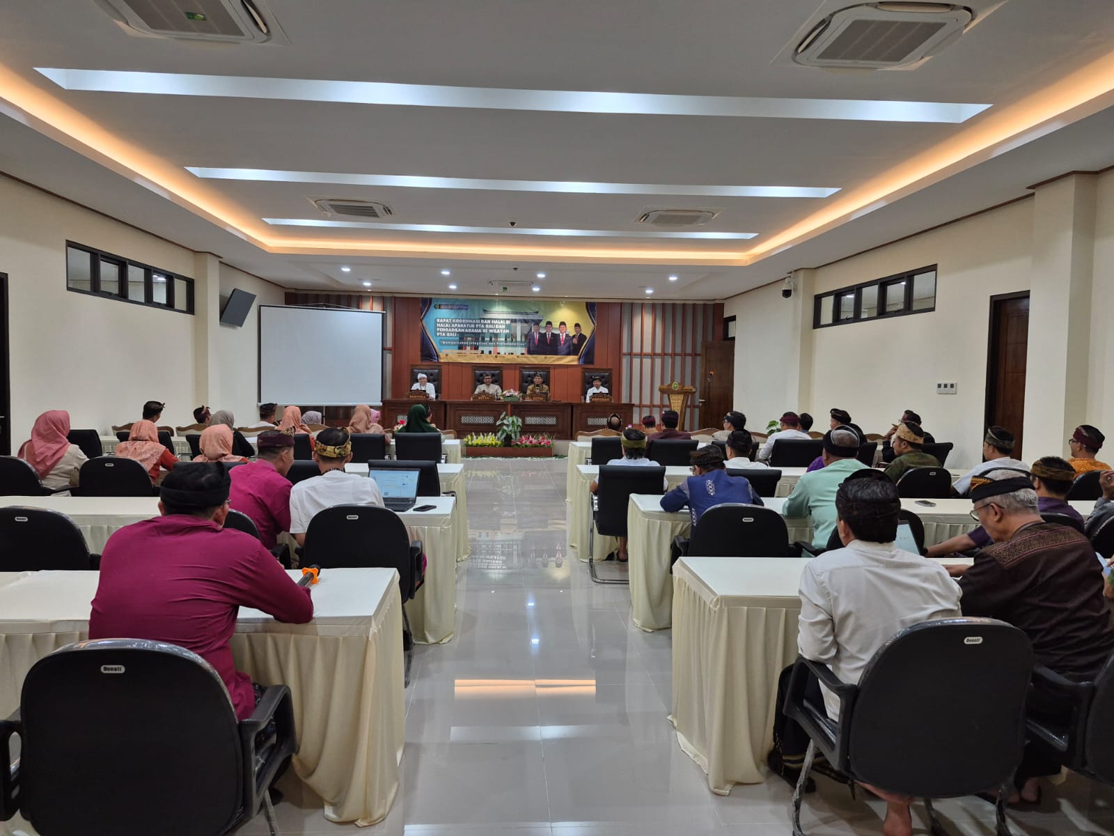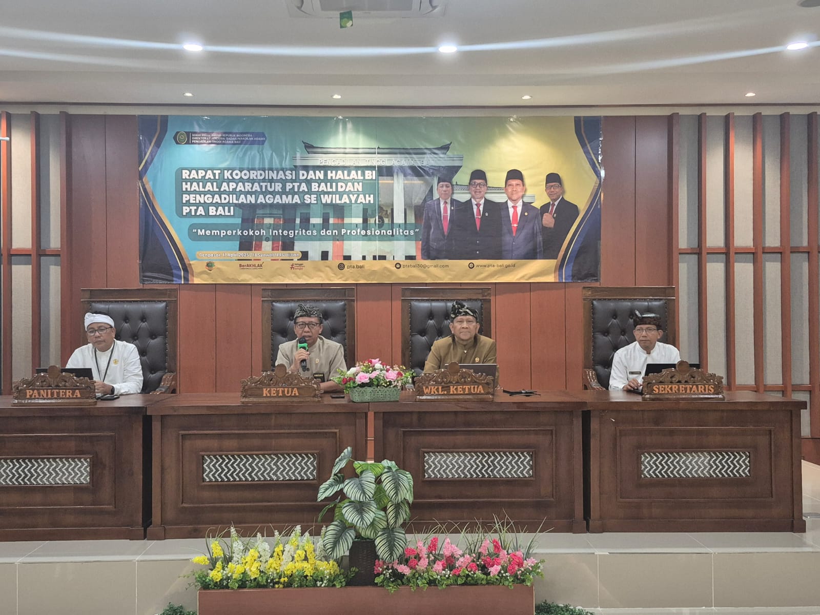 Rapat Koordinasi dan Halalbihalal di laksanakan di ruang rapat Pengadilan Tinggi Agama Bali, dengan di pimpin oleh Bapak Drs. Kt. Madhuddin Djamal, S.H., M.M. Ketua PTA Bali, dan di dampingi oleh Bapak Dr.H. Acep Saifuddin, S.H., M.Ag. Wakil Ketua PTA Bali, Bapak Lalu Muhamad Taufik, S.H., M.H. Panitera PTA Bali, dan Bapak Saifuddin, S.H., M.H. Sekretaris PTA Bali.
