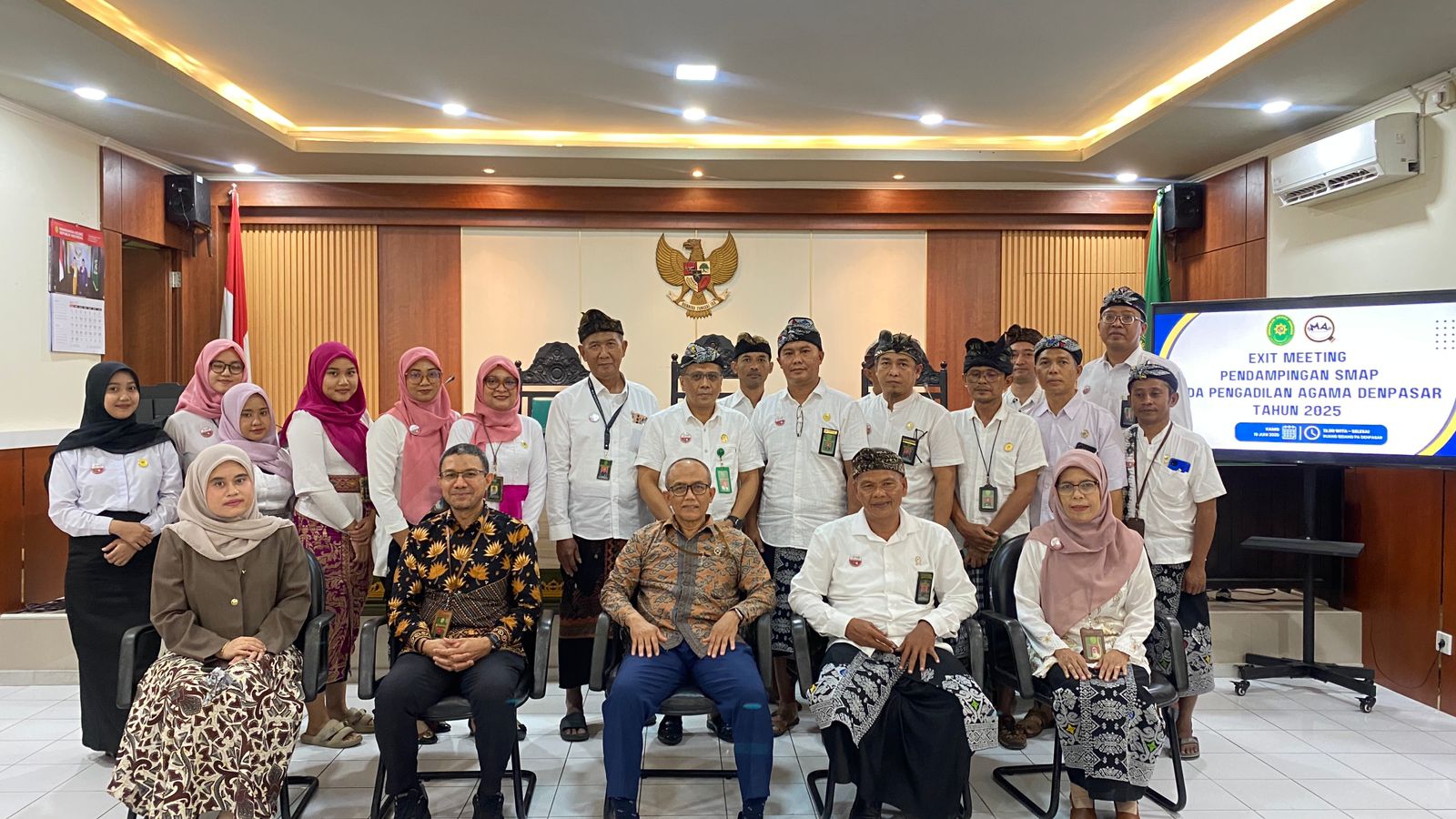 Pendampingan secara luring oleh Tim Badan Pengawas (BAWAS) Mahkamah Agung RI di Pengadilan Agama Denpasar dilaksanakan dari tanggal 17 Juni 2025 sampai dengan 19 Juni 2025. Pada tanggal 19 Juni 2025 dilakukan Exit Meeting Pendampingan SMAP pada Pengadilan Agama Denpasar Tahun 2025 di Ruang sidang Pengadilan Agama Denpasar.